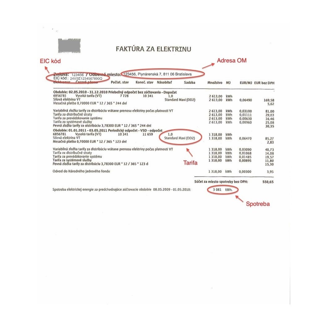 Príklad faktúry elektrina - východné Slovensko